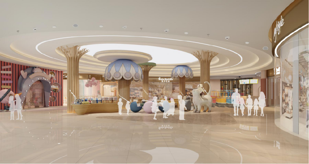 潮州濱江華府商業(yè)項(xiàng)目設(shè)計(jì)外立面設(shè)計(jì)元素鳳的設(shè)計(jì)概念,負(fù)一層,功能為超市,一層為黃金,首飾,主力店,二層,服裝,三層,兒童樂園,母嬰用品,四層,餐飲區(qū),五層,戶外泳池,花園式宴會區(qū)。設(shè)計(jì)主題以廣濟(jì)橋的建筑形態(tài)去設(shè)計(jì)布置生活超市區(qū)域,寓意廣濟(jì)百粵之民,為人們提供生活便利。結(jié)合潮州的韓江跟筆架山,意在形成“水聚山環(huán)旺氣連”的磁場。